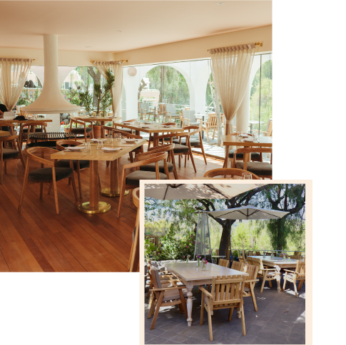 El espacio íntimo, acogedor y lleno de luz ha sido diseñado para invitar a la pausa. Ya sea en el interior o en nuestra terraza junto al río, cada comida se transforma en un momento de disfrute, calma y conexión. Aquí, cada plato cuenta una historia. Cada detalle desde la vajilla hasta la forma parte del relato.